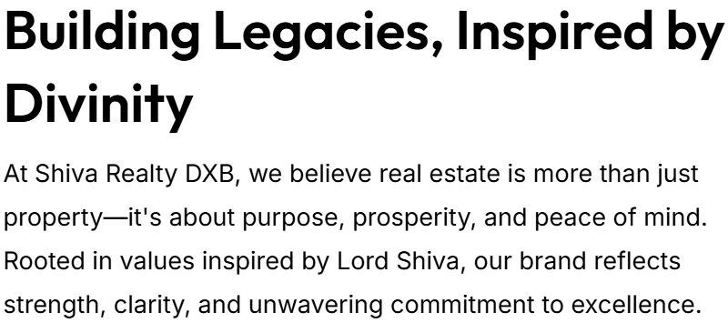 At Shiva Realty DXB, we believe real estate is more than just property—it's about purpose, prosperity, and peace of mind. Rooted in values inspired by Lord Shiva, our brand reflects strength, clarity, and unwavering commitment to excellence.